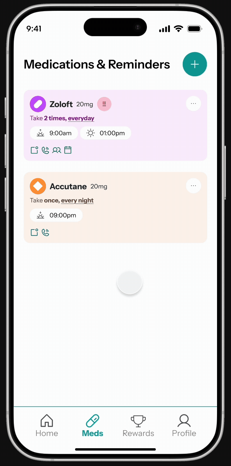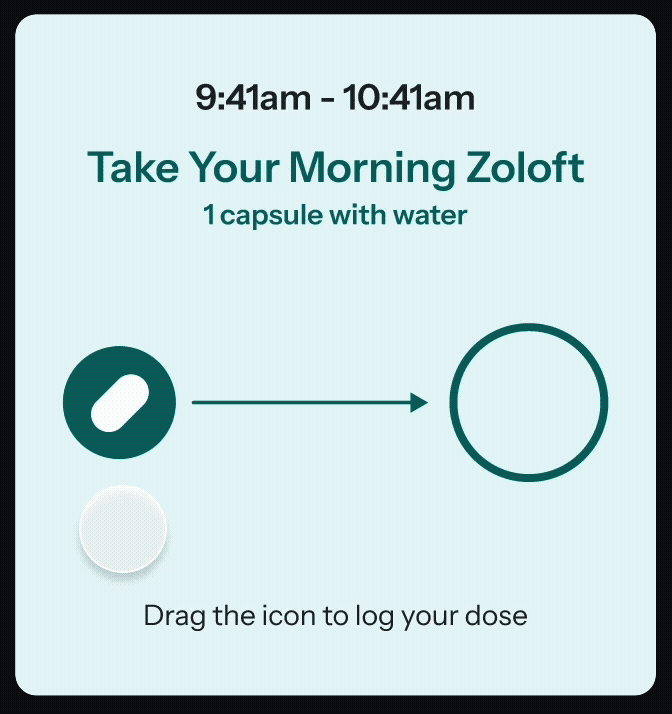 To solve this, we aimed to design a logging experience that promoted mindful confirmation, encouraging users to be present and intentional when recording that they've taken their medication. By designing the logging interaction to require more than a simple, thoughtless tap, we'd be building a safeguard against accidental or premature logging.