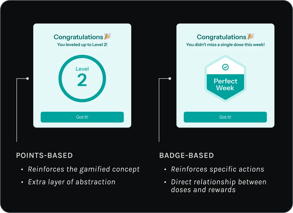To keep users motivated and help them build the habit of taking their medication as prescribed, we wanted to introduce elements of gamification.
